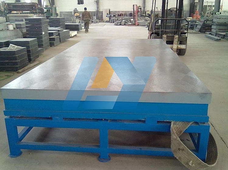 3、鑄鐵平板安裝時(shí)將鑄鐵平板的各個(gè)支撐點(diǎn)用調(diào)整墊鐵墊好、墊實(shí),由技術(shù)人員將鑄鐵平板調(diào)整至合格精度。